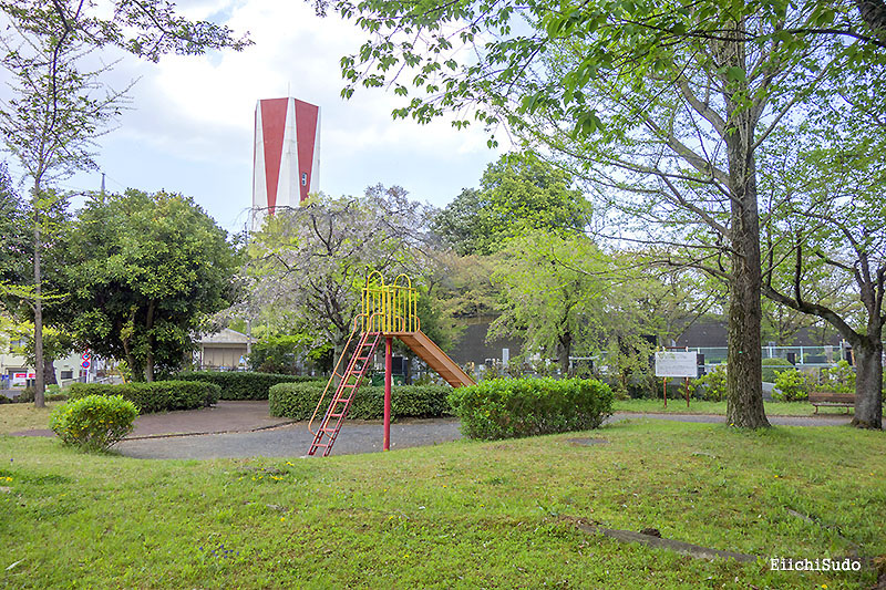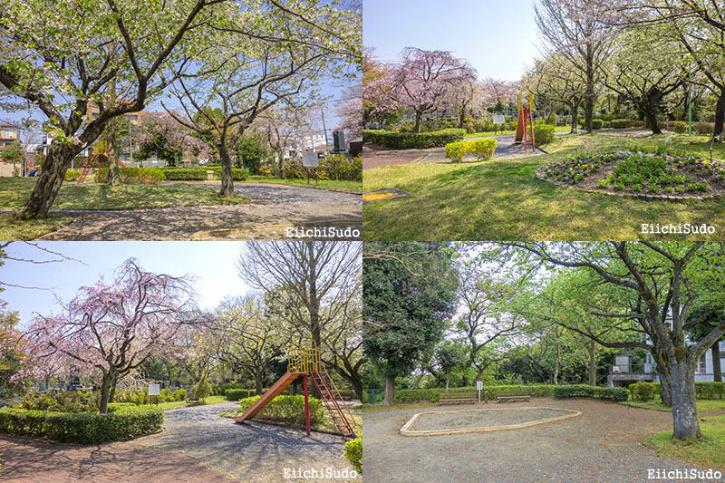 一本杉公園の西側にありよこやまの道が通っている。春には桜の花見もできる。